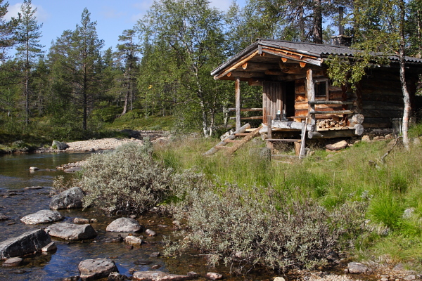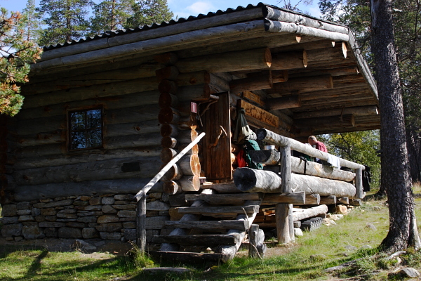 Muorravaarakan autiotuvalla olikin sitten porukkaa jo enemmän - sisällä ainakin pari seuruetta ja läheisyydessäkin pari telttakuntaa. Valitsimme pienen hakemisen jälkeen oman telttapaikkamme