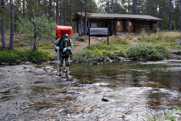 lähdimme liikkeelle ja heti samantien piti ylittää Muorravaarakanjoki. Kylmää vettä, mutta ylitys oli helppo (aivan autiotuvan kohdalta). Vettä oli kuitenkin senverran, että